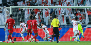 ومن ركلة جزاء للمنتخب الفلسطيني عدل وسام أبو علي النتيجة قبل دقائقَ من نهاية الشوط الأول.