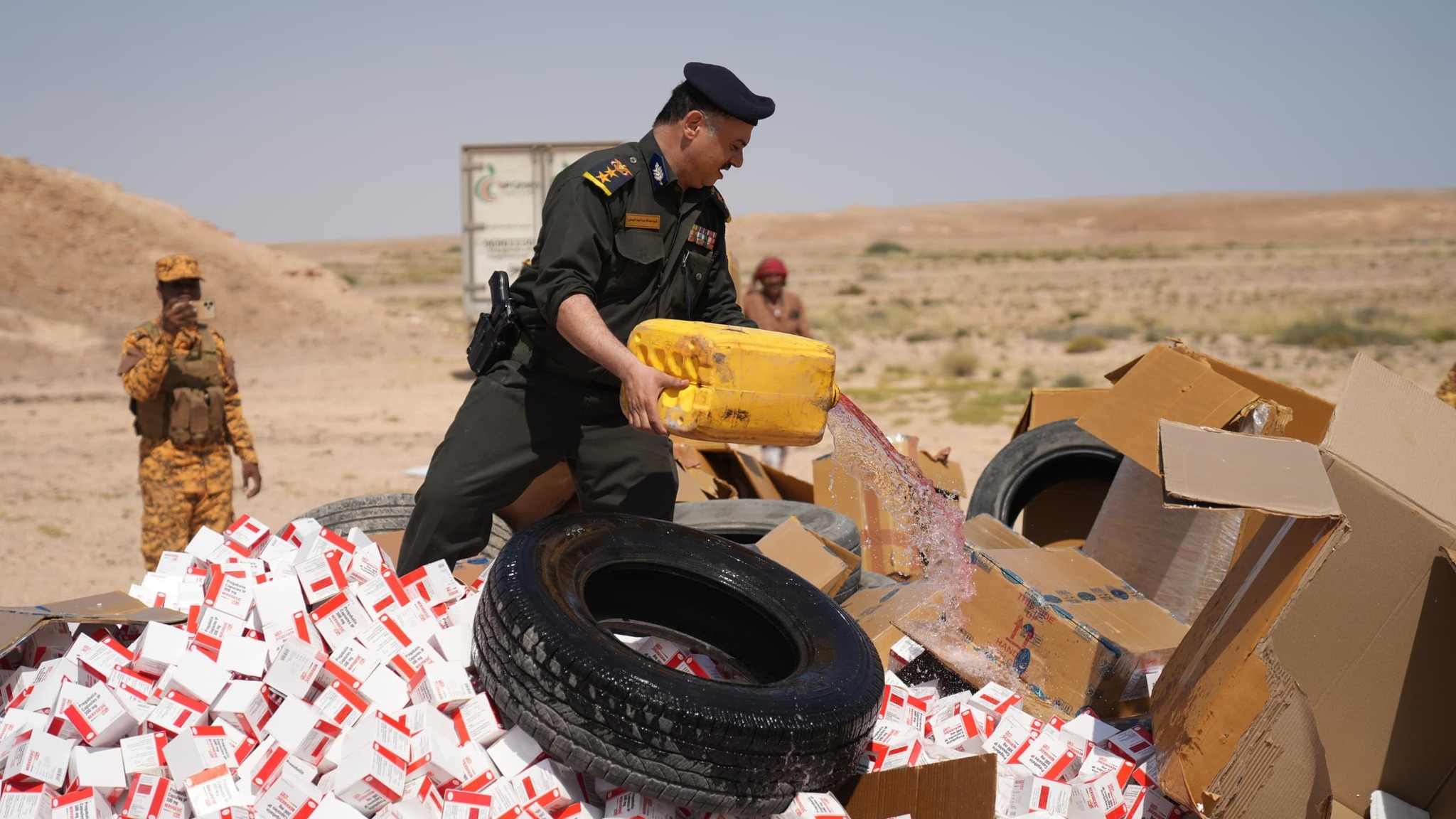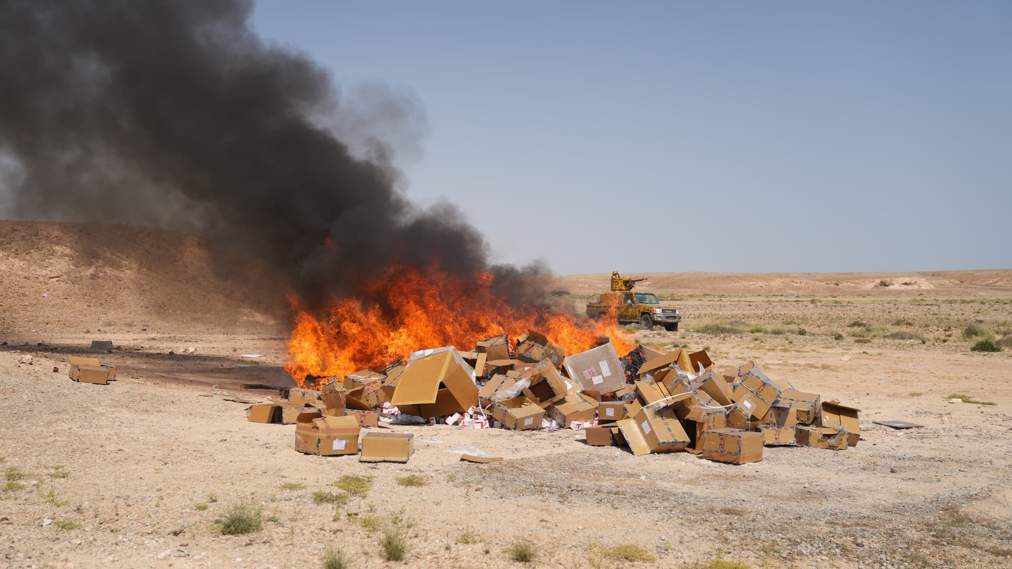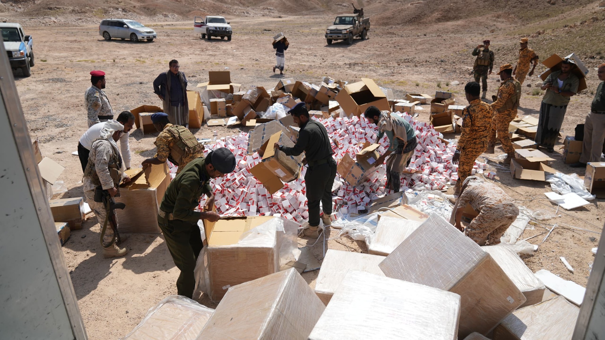 أتلفت الأجهزة الأمنية ونيابة مديرية حوف بمدينة الغيضة، محافظة المهرة، اليوم الأربعاء، كميات كبيرة من الأدوية المهربة والحشيش والخمور.