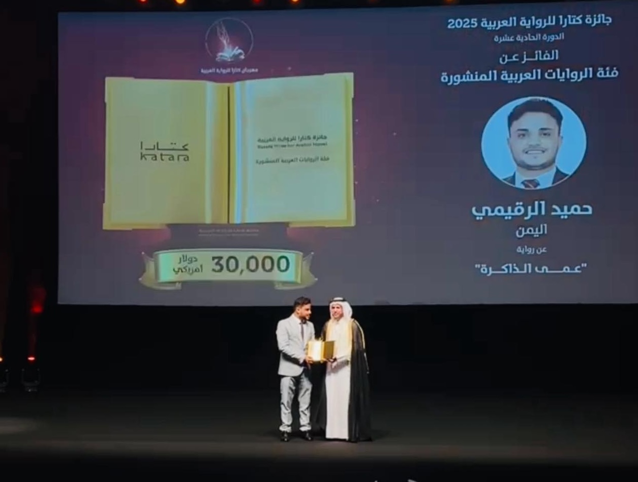 وأعلنت المؤسسة العامة للحي الثقافي في قطر (كتارا) الخميس الماضي، فوز الروائي اليمني حميد الرقيمي، بجائزة "كتارا" للرواية العربية في دورتها الحادية عشرة عن روايته "عمى الذاكرة" في فئة الروايات المنشورة.
