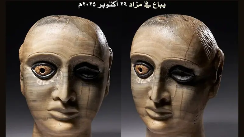 أعلنت دار بلاكاس الفرنسية عن عرض رأس تمثال جنائزي يمني من المرمر للبيع في مزاد يوم 29 أكتوبر 2025، في قطعة فنية نادرة تُعدّ نموذجاً بارزاً لفن النحت العربي الجنوبي القديم.