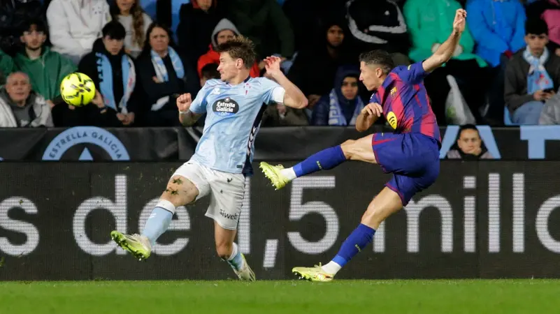 افتتح ليفاندوفسكي التسجيل لبرشلونة في الدقيقة 10 من ركلة جزاء وتعادل سريعاً سيرجيو كاريرا لسلتا فيغو في الدقيقة 11.