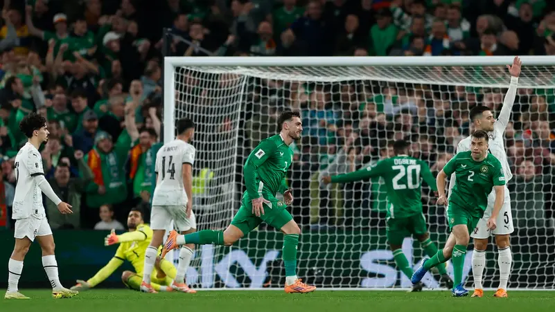 هزمت إيرلندا ضيفتها البرتغال وحرمتها من حسم التأهل المباشر إلى نهائيات كأس العالم لكرة القدم 2026، بعد فوزها عليها 2-0 الخميس في الجولة ما قبل الأخيرة من التصفيات التي شهدت طرد القائد كريستيانو رونالدو ببطاقة حمراء مباشرة لأول مرة في مسيرته الدولية .