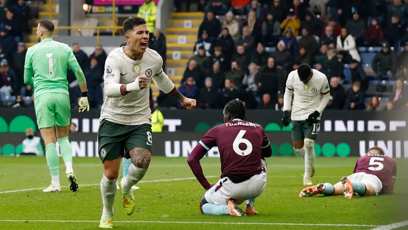 قفز فريق تشيلسي للمركز الثاني بالدوري الإنجليزي الممتاز، بشكل مؤقت، عقب فوزه على مضيفه بيرنلي 2-صفر في المباراة التي جمعتهما يوم السبت ضمن منافسات الجولة الثانية عشرة من مسابقة الدوري.