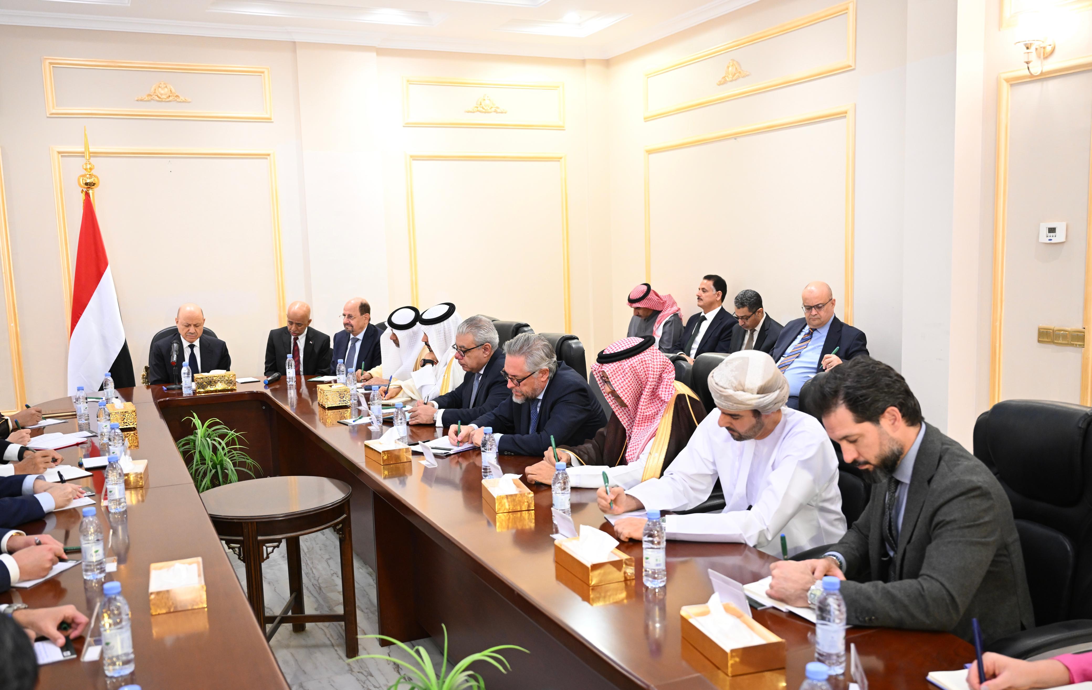 التقى رئيس مجلس القيادة الرئاسي رشاد العليمي برفقة رئيس الحكومة بسفراء الدول الراعية للعملية السياسية في اليمن، وذلك لمناقشة التطورات في المحافظة الشرقية لليمن.