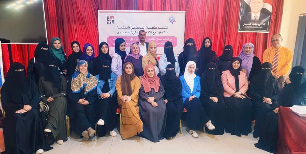 نظّمت نقابة الصحفيين اليمنيين، بالتعاون مع الاتحاد الدولي للصحفيين، اليوم السبت، في مدينة تعز، ورشة عمل متخصصة ناقشت آليات حماية الصحفيات اليمنيات من العنف القائم على النوع الاجتماعي.