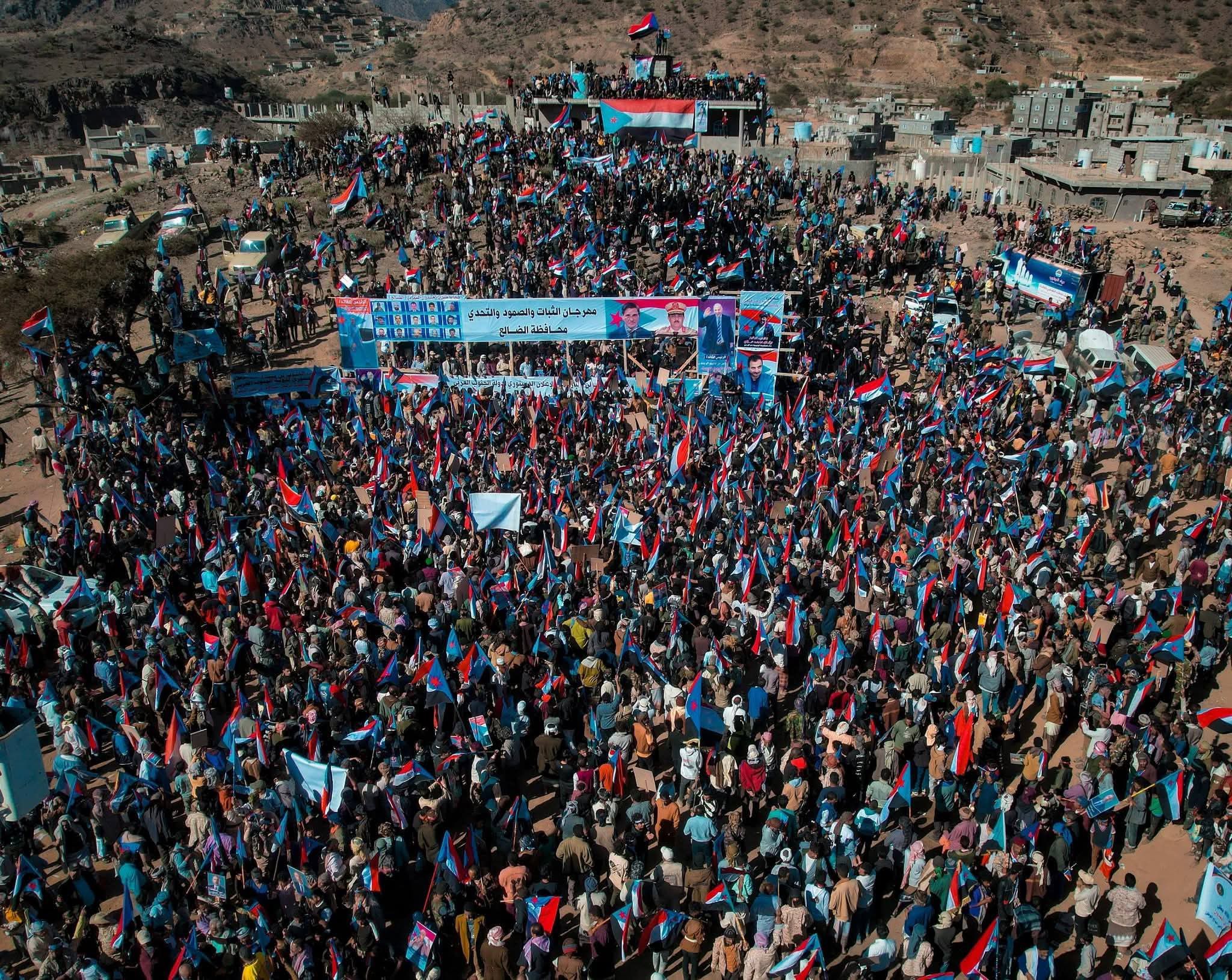 تظاهر آلاف من أنصار المجلس الانتقالي الجنوبي"المنحل"، الاثنين، في محافظة الضالع جنوبي اليمن، في فعالية أطلق عليها المنظمون اسم "مليونية الصمود والثبات والتحدي"، للتعبير عن دعمهم للمجلس ورفضهم قرار حله.