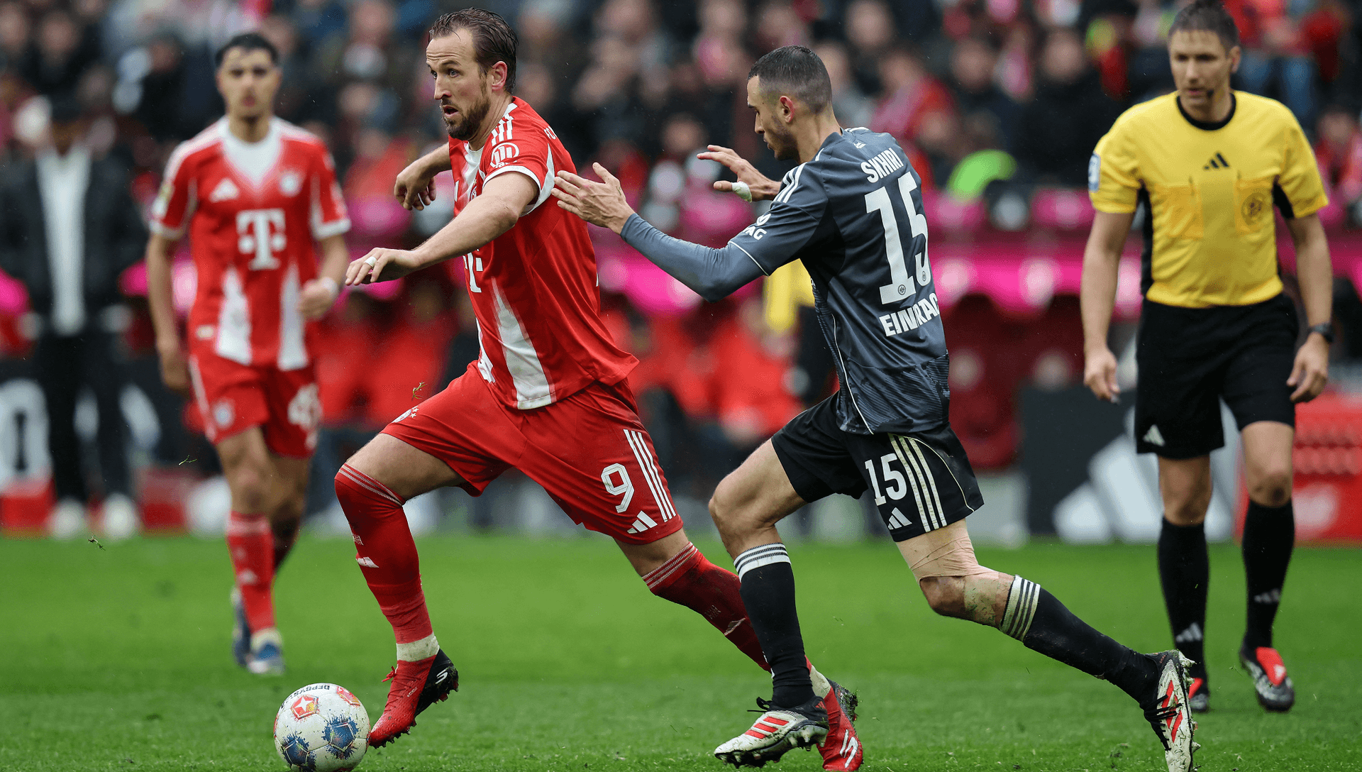 وسجل كاين ثنائيته في الدقيقتين 20 و68، بعدما افتتح ألكسندر بافلوفيتش التسجيل للعملاق البافاري في الدقيقة 16، في حين سجّل جوناثان بوركادت (77 من ركلة جزاء) والفرنسي أرنو كاليمويندو موينغا (86) هدفي فرانكفورت.