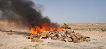 السلطات في المهرة تتلف كميات كبيرة من الأدوية المهربة والحشيش والخمور