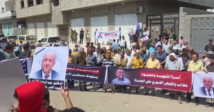 عدن.. محتجون يطالبون مجلس القيادة الرئاسي بتسريع التحقيقات لكشف الجناة بمقتل عبدالرحمن الشاعر