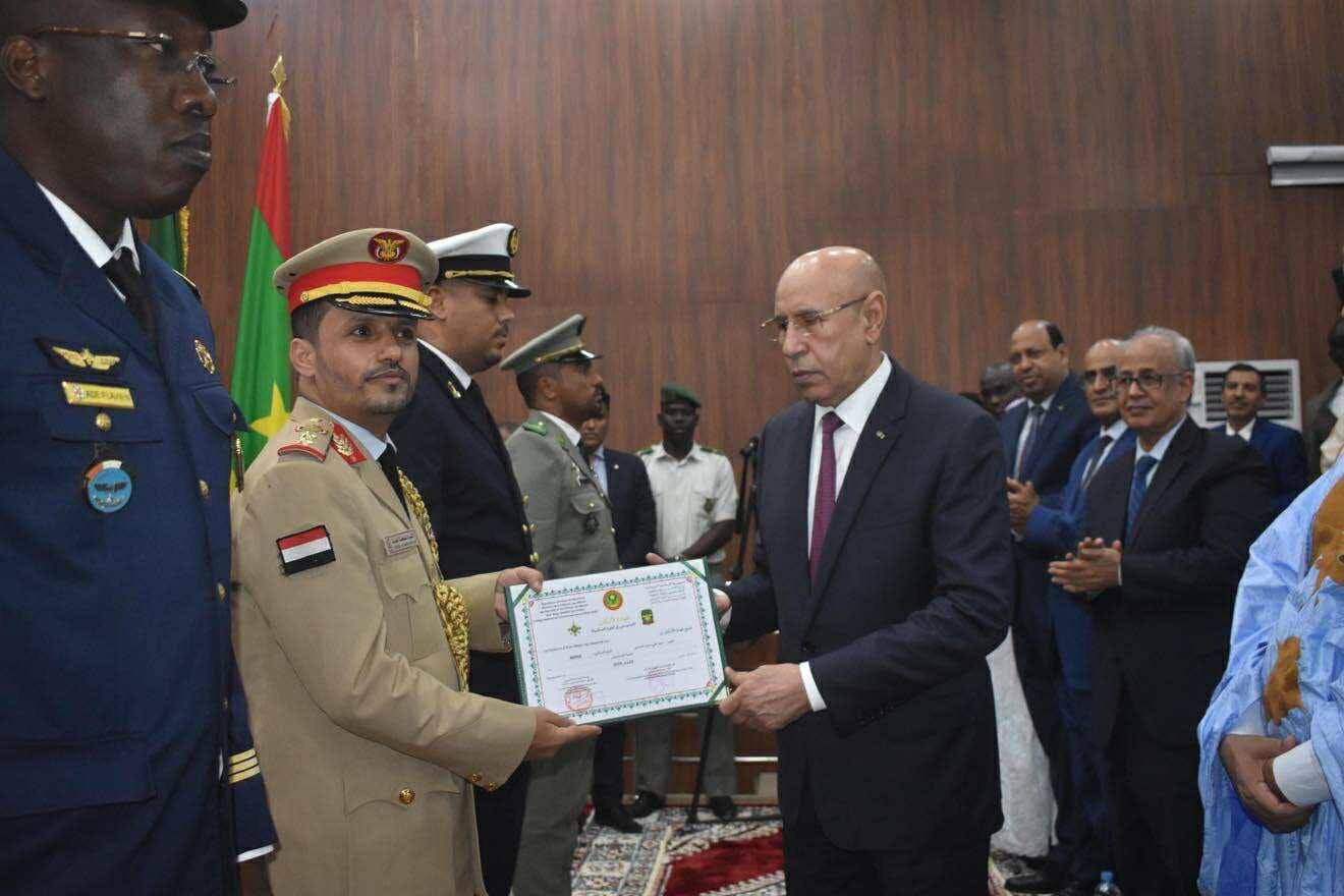 وجرى الحفل الختامي للدورة، برعاية وحضور الرئيس الموريتاني محمد ولد الشيخ الغزواني، الذي كرّم المتفوقين من الضباط المشاركين.