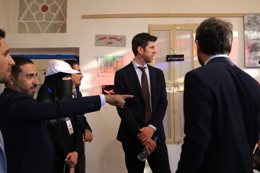 زار وفد من بعثة الاتحاد الأوروبي لدى اليمن، اليوم الاثنين، برئاسة يوست مولمان رئيس قسم التعاون التنموي، متحف الذاكرة بمدينة تعز، في إطار اهتمام الاتحاد بدعم جهود التوثيق وتعزيز الوعي المجتمعي بمعاناة المدنيين خلال الحرب.
