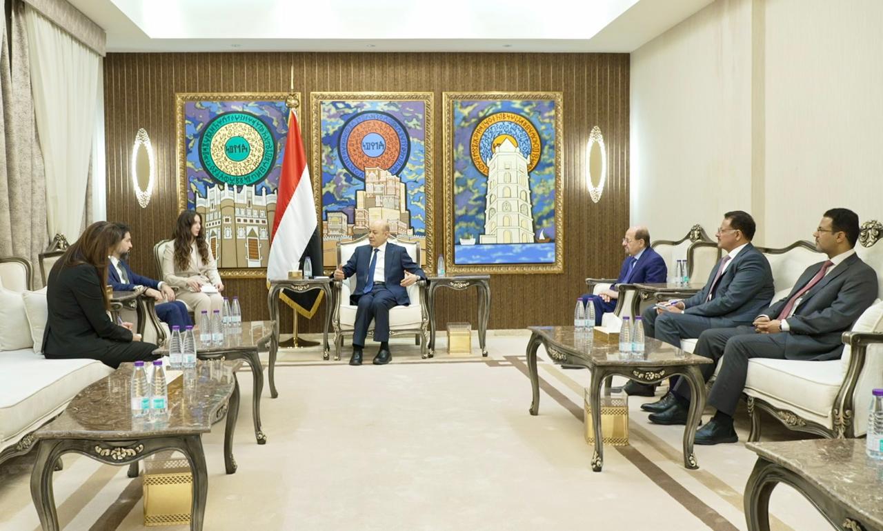 بحث رئيس مجلس القيادة الرئاسي، رشاد العليمي، مع القائم بأعمال سفارة الولايات المتحدة لدى اليمن جوناثان بيتشا، العلاقات الثنائية بين البلدين وسبل تعزيزها.