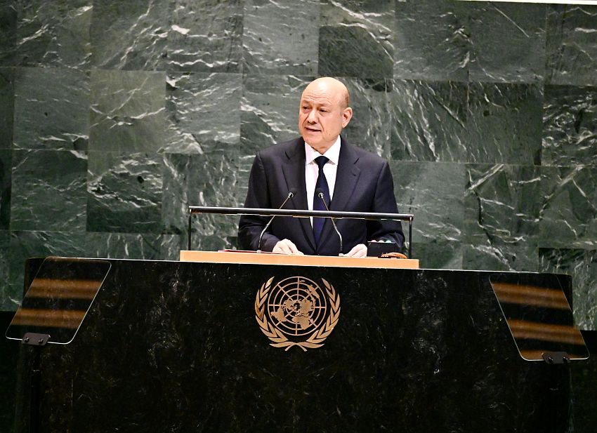 وقال العليمي، في كلمة اليمن أمام الدورة الثمانين للجمعية العامة للأمم المتحدة في نيويورك، إن "سياسة إدارة الصراع والاحتواء خلال السنوات الماضية منحت المليشيات الحوثية الوقت والموارد لتوسيع ترسانتها العسكرية، وتهديد السلم الإقليمي والدولي"، مشدداً على أن "السلام المنشود لا يمكن أن يُستجدى بل يُفرض بالقوة".