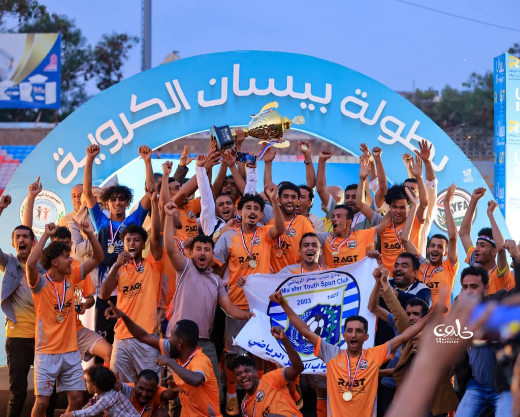 تُوِّج نادي شباب المعافر بلقب بطولة "بيسان" لكرة القدم الأولى، بعد فوزه على الرشيد بركلات الترجيح (7–6)، عقب تعادلهما 1–1 في الوقت الأصلي للمباراة النهائية التي أُقيمت اليوم على ملعب الشهداء بتعز.