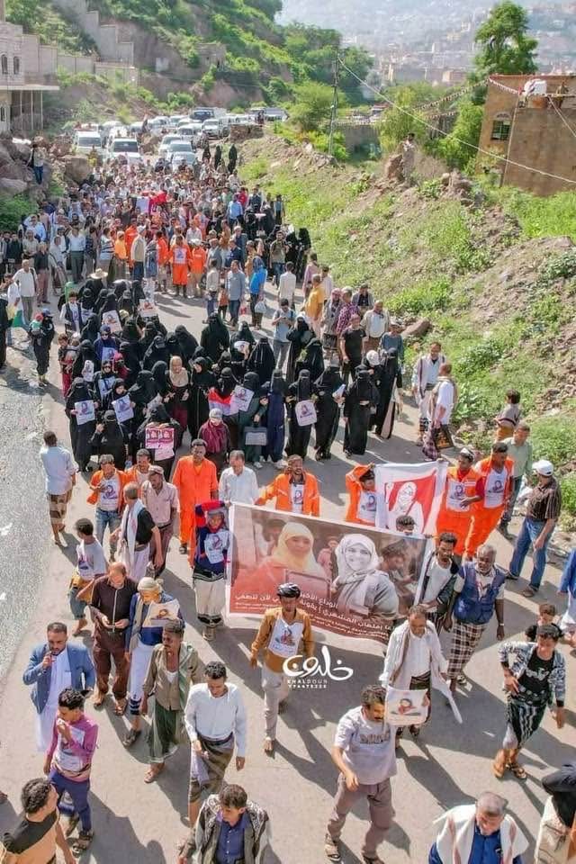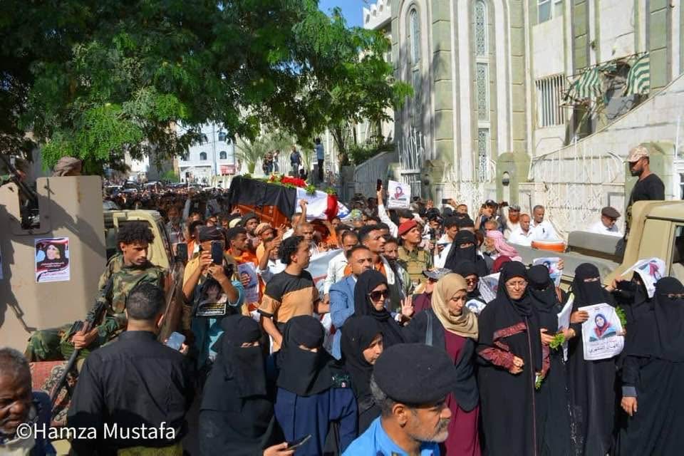 وشارك في مراسم التشييع آلاف من أبناء المحافظة الذين ودّعوا الفقيدة في أجواء مهيبة، قبل أن يُنقل جثمانها إلى مسقط رأسها في منطقة المشاولة بريف تعز ليوارى الثرى هناك.