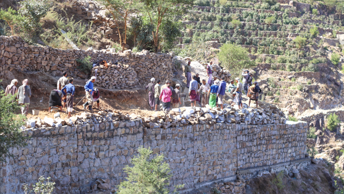 ووسط الحرب في البلاد، سُجّلت واحدة من أولى المبادرات المجتمعية في منطقة وصاب وسط اليمن، قبل أن تتوسّع المبادرات وتتمدّد إلى مختلف محافظات اليمن، خصوصاً محافظة ريمة التي قامت فيها مشاريع شقّ طرقات في جبال شديدة الوعورة، وهو أمر سُجّل في مختلف أنحاء البلاد.