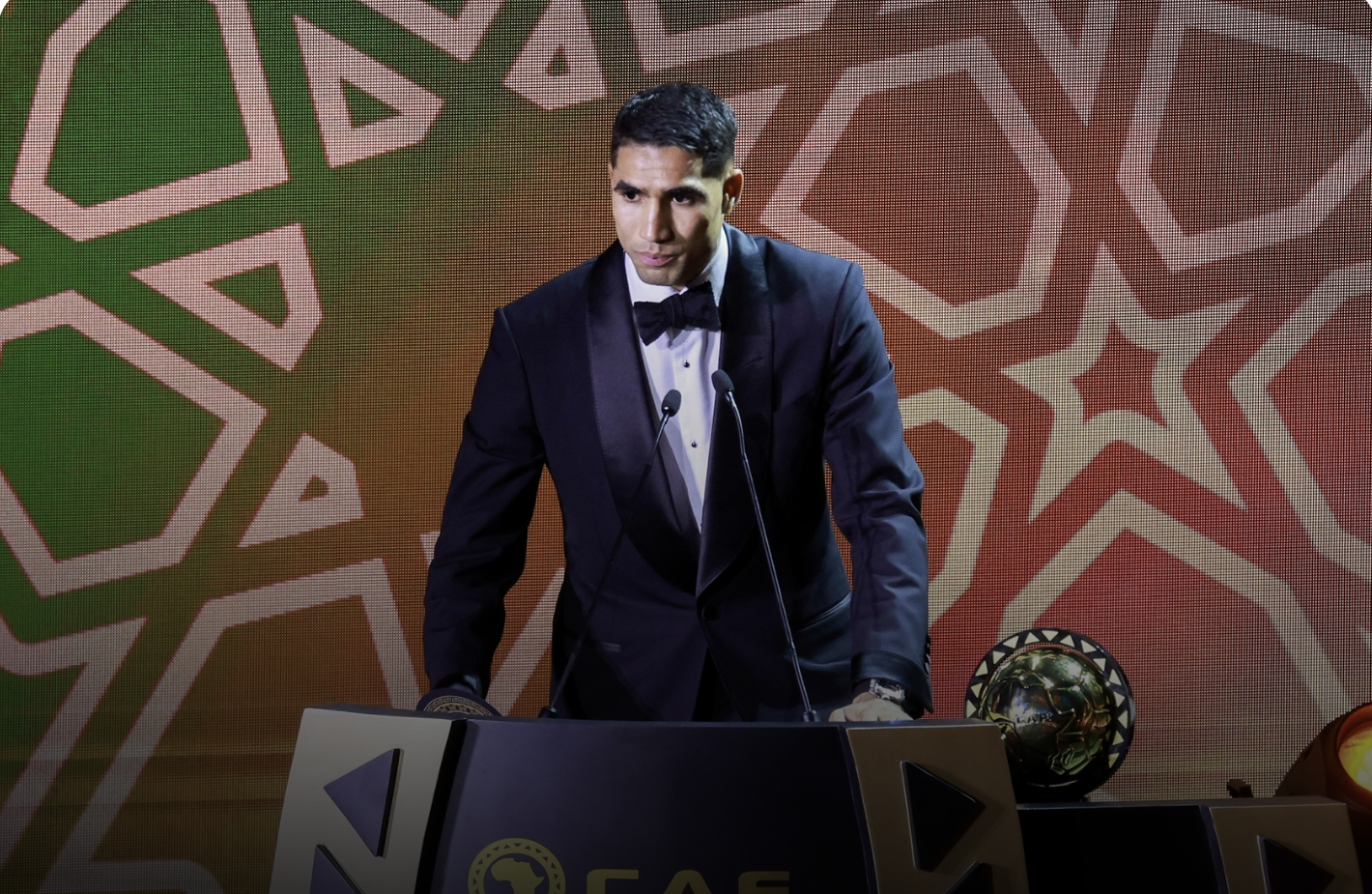 ظفر النجم المغربي أشرف حكيمي بجائزة أفضل لاعب إفريقي لعام 2025 اليوم الأربعاء خلال حفل توزيع جوائز الاتحاد الإفريقي لكرة القدم لعام 2025 في المغرب، وذلك بعد موسم باهر مع ناديه ومنتخب بلاده.