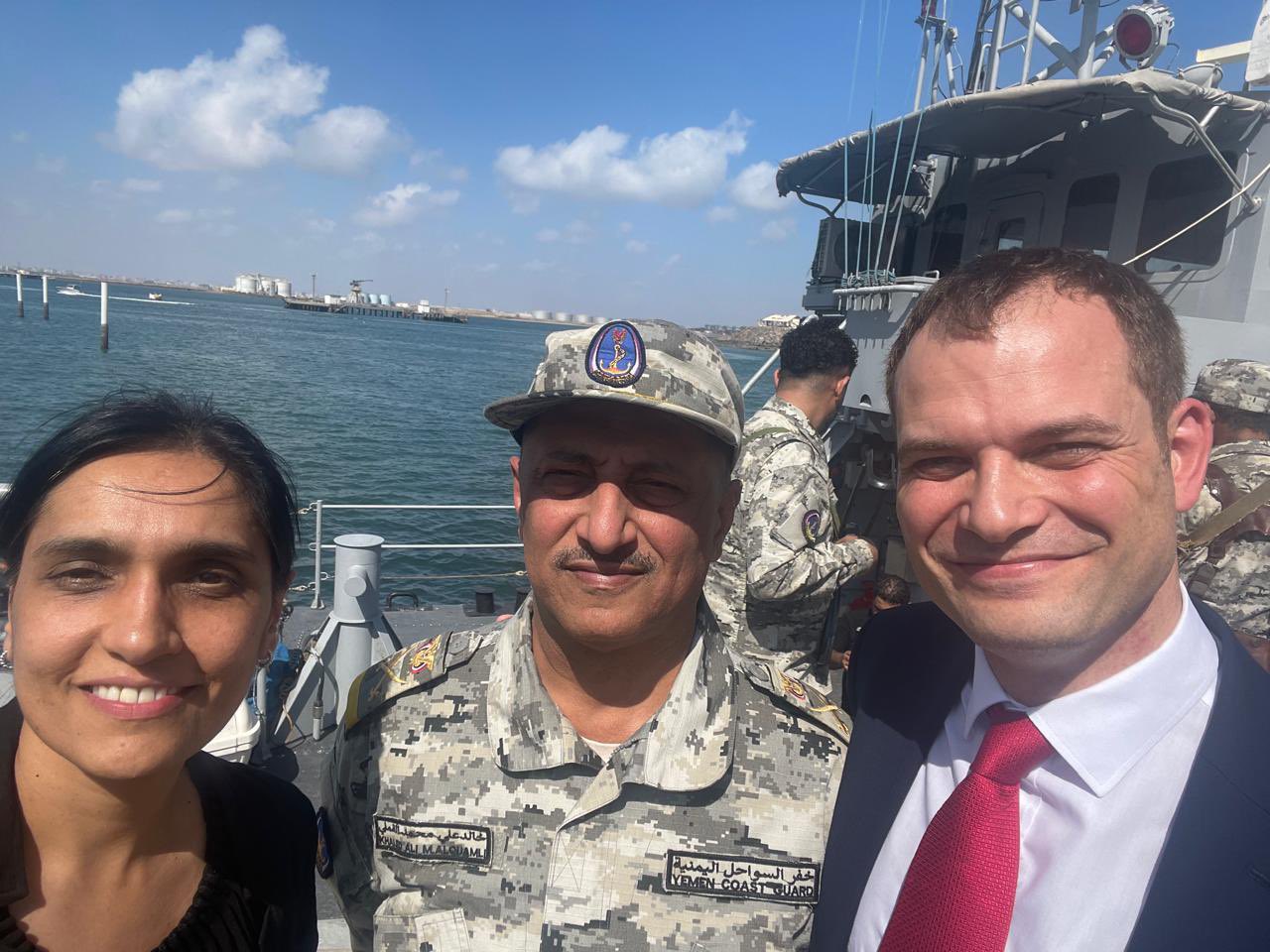 وشكّلت الزيارة رسالة واضحة بدعم الحكومة اليمنية وتعزيز التعاون في مكافحة تهريب الأسلحة وتأمين خطوط الملاحة الدولية.