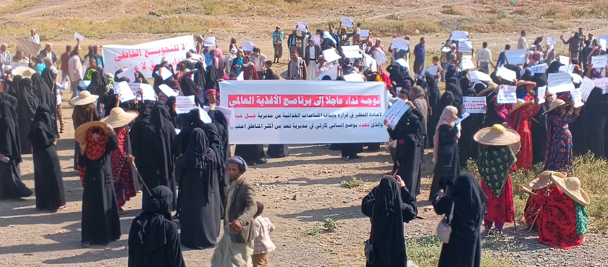 وطالب المحتجون برنامج الأغذية العالمي بمراجعة قراره بشكل عاجل، مؤكدين أن المديرية تُعد من أكثر مناطق المحافظة احتياجاً، إذ يبلغ عدد سكانها أكثر من 200 ألف نسمة، يعيش 68% منهم تحت خط الفقر. وأوضح البيان أن استبعاد المديرية يهدد نحو 8.300 أسرة مستفيدة، إضافة إلى 18 ألف أسرة من الفئات الأشد ضعفاً، ما يستدعي زيادة حجم المساعدات وليس تقليصها.