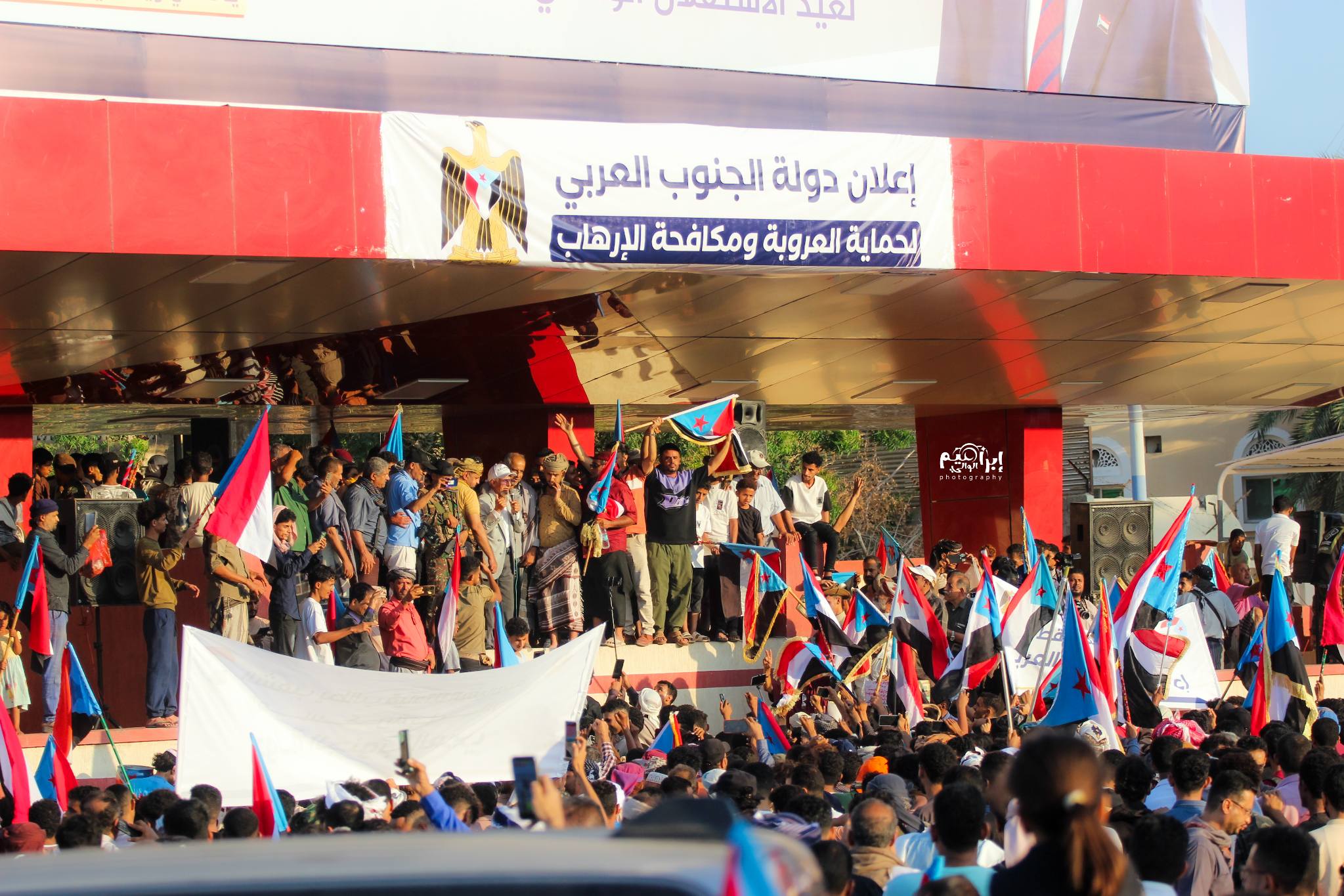في موازاة ذلك، يحاول "الانتقالي" استخدام ورقته الأقوى، وهي الشارع، فقد دفع خلال الأيام الماضية بحشود جماهيرية كبيرة في ساحة الاعتصام بعدن لإظهار التأييد الشعبي لخطواته، والتأكيد أن ما يقوم به يعبّر عن "رغبة الجنوبيين".