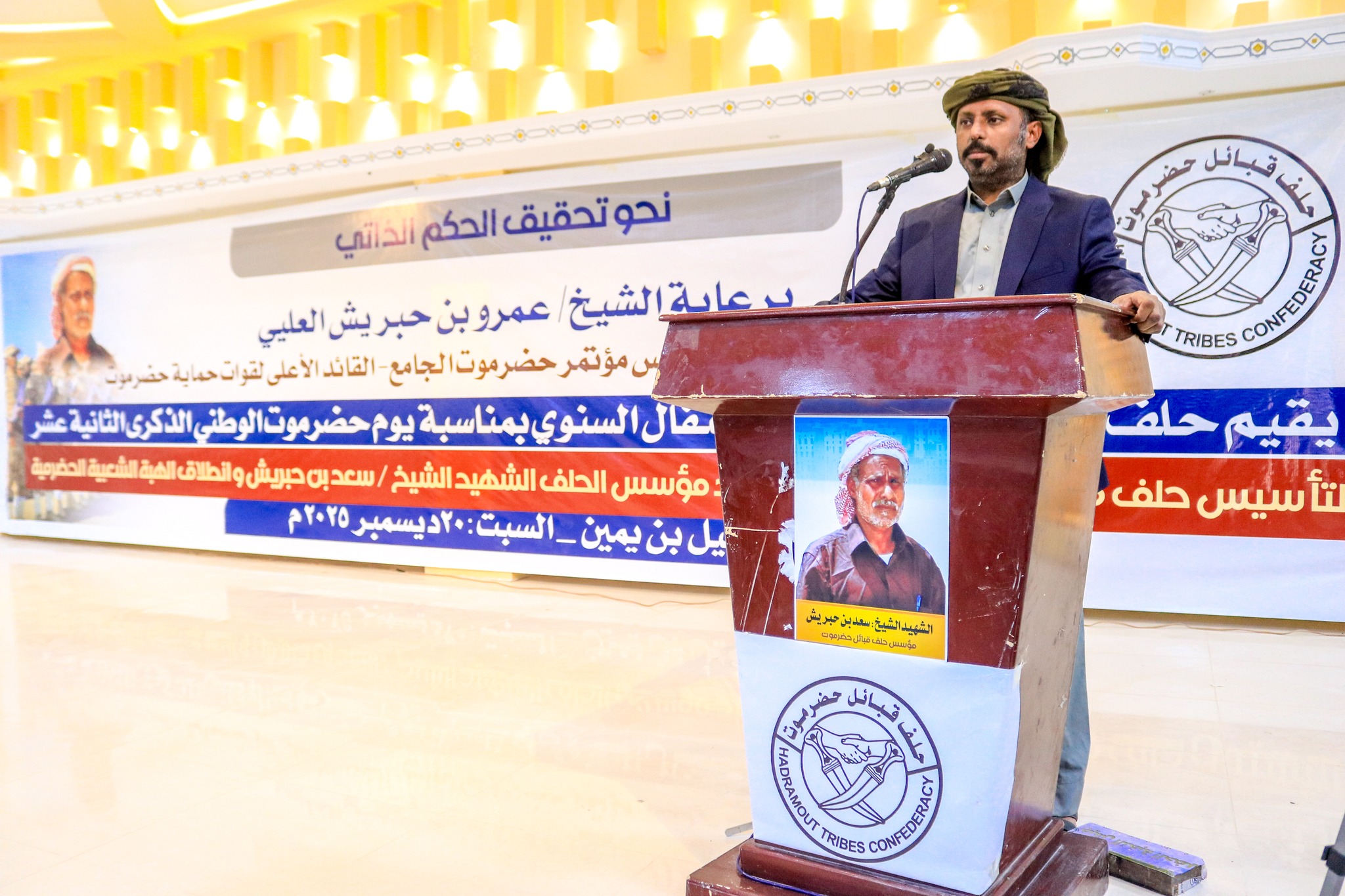 واختتم عمرو بن حبريش كلمته بالتأكيد على تمسك حضرموت بخيار الحكم الذاتي، مشيرًا إلى أن أبناء المحافظة اليوم أكثر تماسكًا والتفافًا حول قضيتهم، وأن حضرموت ثابتة على أرضها، ومستعدة لمواصلة الدفاع عن حقوقها ومكتسباتها بكل السبل المشروعة.