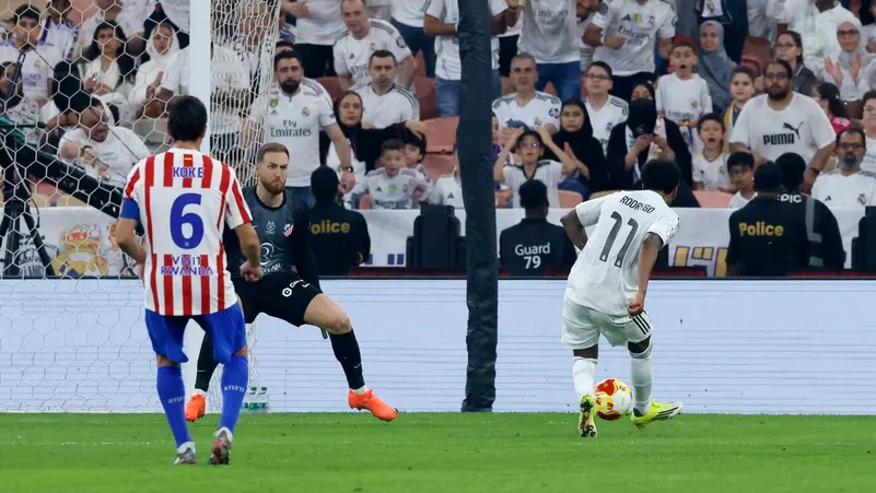 ضرب ريال مدريد موعداً نارياً مع برشلونة في نهائي كأس السوبر الإسبانية الأحد المقبل وذلك بعدما تغلب على جاره أتلتيكو مدريد بهدفين مقابل هدف يوم الخميس في المباراة التي احتضنها ملعب الإنماء في مدينة جدة السعودية.