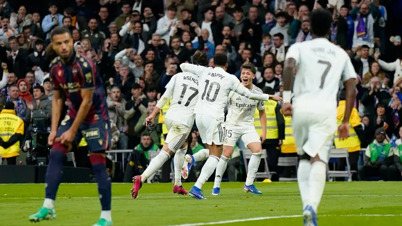 وسجل كل من كيليان مبابي (58 من ركلة جزاء) وراؤول أسينسيو (65) هدفي ريال مدريد.