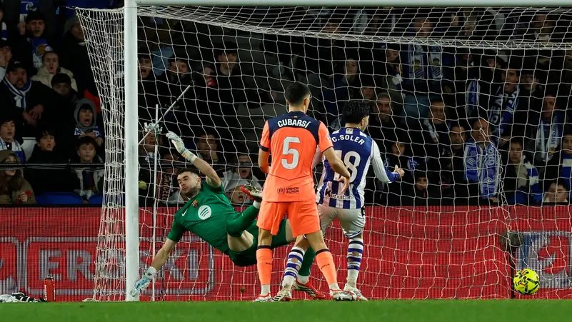 انكسرت سلسلة انتصارات فريق برشلونة بالخسارة خارج أرضه أمام ريال سوسييداد بنتيجة 2-1 في مباراة تألق فيها أليكس ريميرو حارس الأخير واتخذ الحكم خيل مانزانو عدة قرارات حاسمة ضمن منافسات الجولة العشرين من الدوري الإسباني لكرة القدم مساء الأحد.