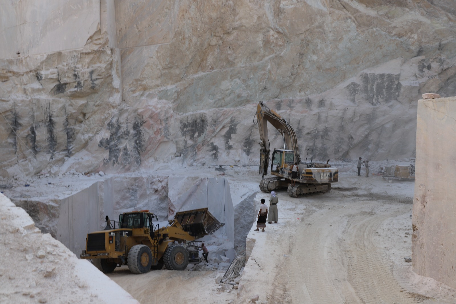 ويتابع غانم "العمل الفعلي في مناجم الرخام بدأ مطلع عامي 1992 و1993، في ظروف بالغة الصعوبة، سواء من حيث الطرق أو المعيشة. كنا نصل إلى الثنية عبر الصحراء، من صافر مروراً بحقـول أسعد الكامل، مسافة تقارب 80 كيلومتراً. لم يكن هناك طريق أسفلتي أو خط دولي كما هو الحال اليوم، وحتى المياه كنا نجلبها من صافر".