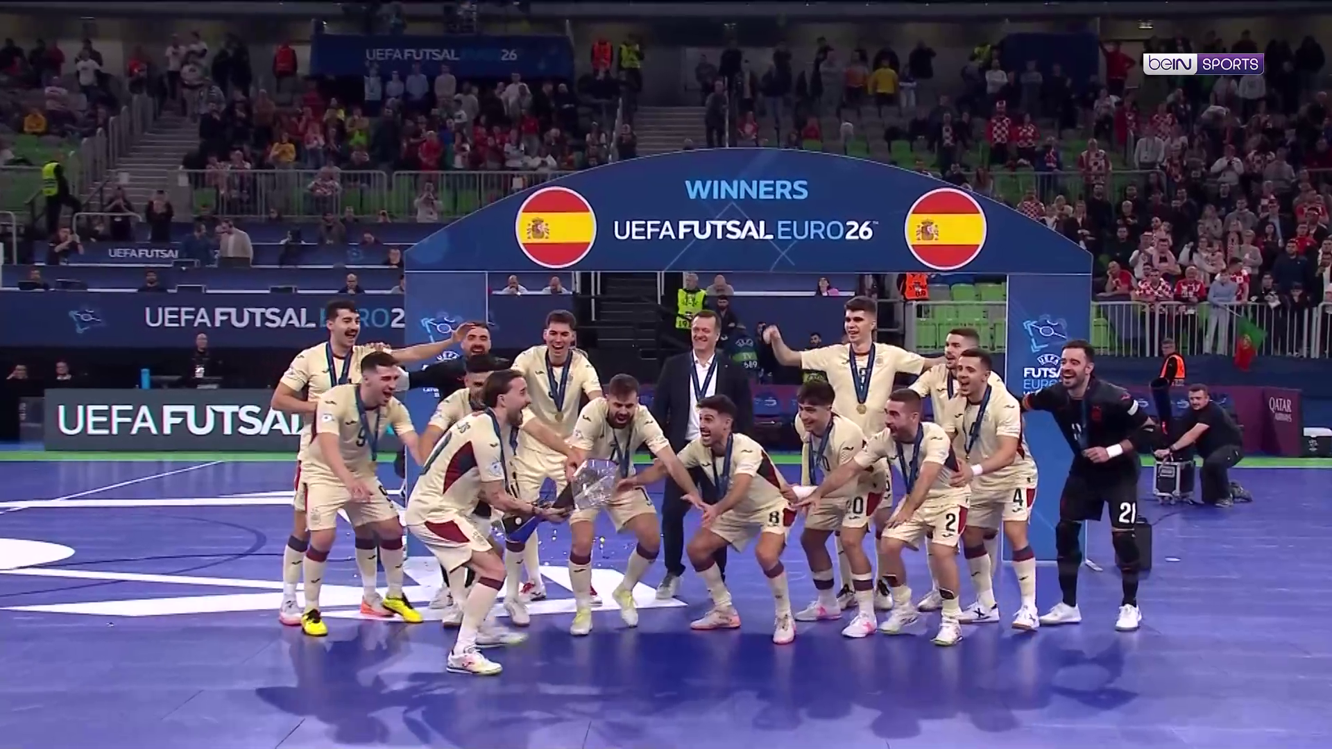 توج المنتخب الإسباني بلقب بطولة أوروبا لكرة القدم داخل الصالات بعد فوزه المثير على المنتخب البرتغالي، حامل اللقب، 5-3.