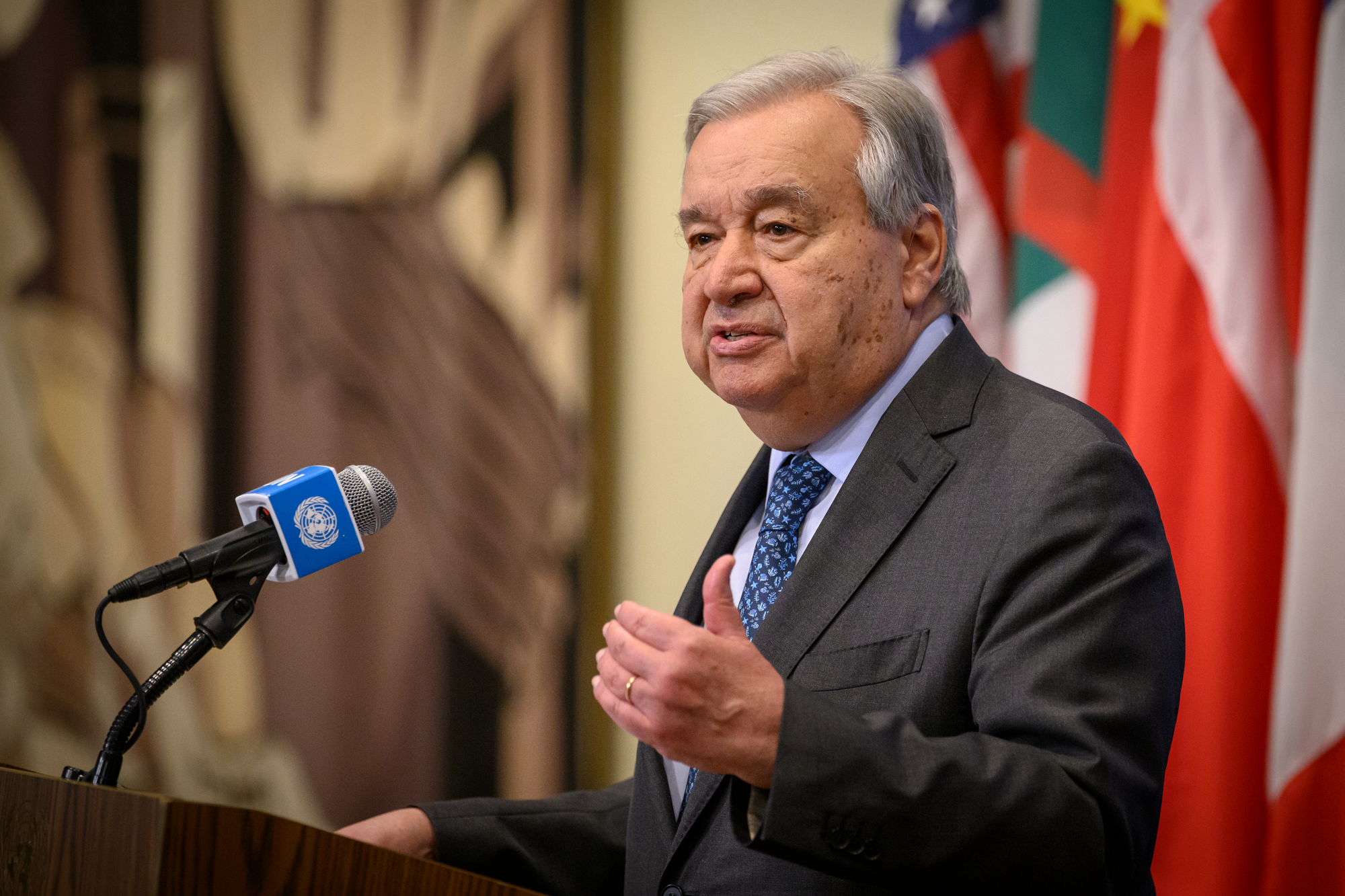 وقال أنطونيو غوتيريش إن العدالة من المفترض أن تكون عمياء، لكن الكثيرين اليوم يختارون غض الطرف عنها. وأضاف أن القانون الدولي يُنتهك في مختلف أنحاء العالم، "وبشكل صارخ في الشرق الأوسط".